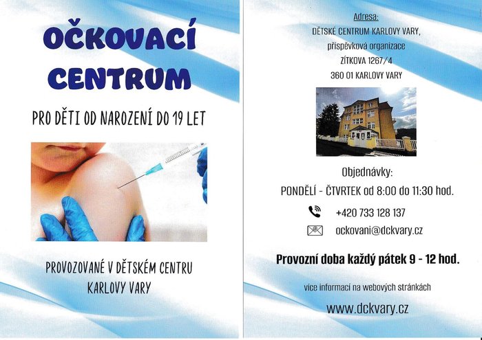 OČKOVACÍ CENTRUM pro děti od narození do 19 let určené zejména pro děti, které nemají svého pediatra.