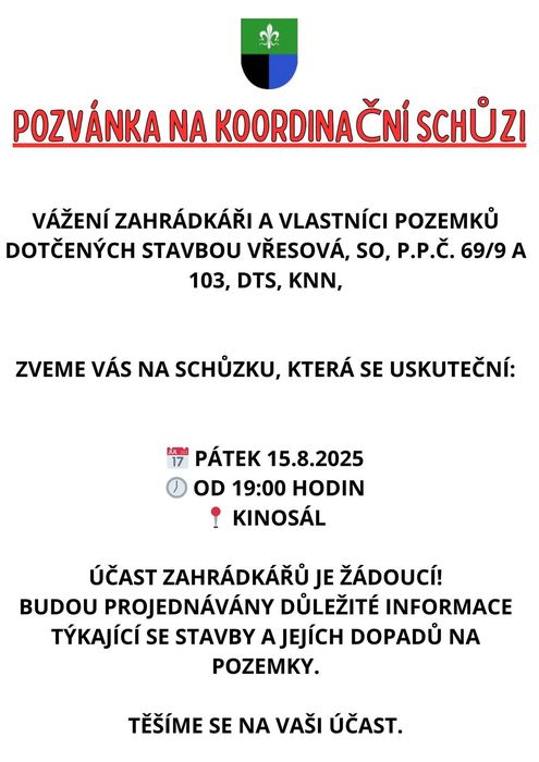 Úvod > Informace o obci > Aktuality > Setkání zahrádkářů a majitelů pozemků dotčených probíhající stavbou - 15.8.2025